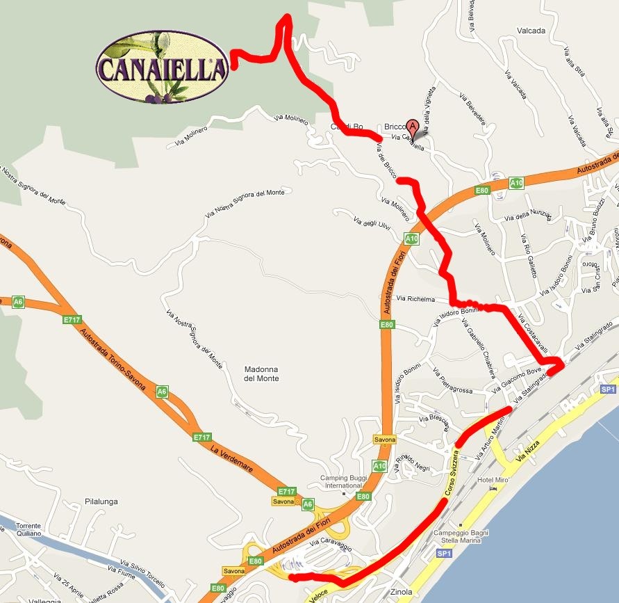 - Proseguire dritto sino a immettersi in Via Canaiella.